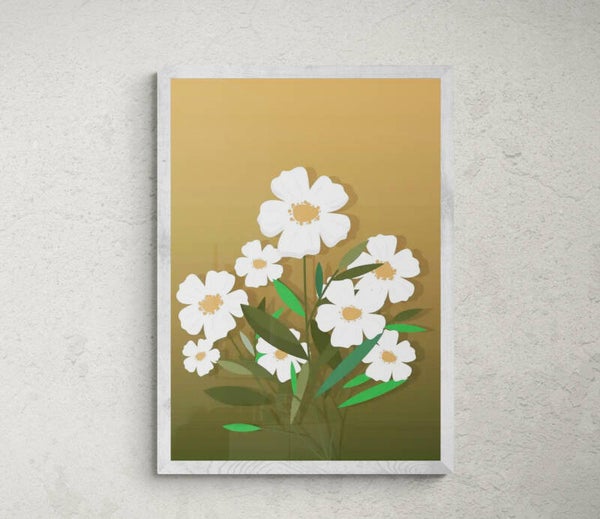 Les fleurs sont disposées de manière harmonieuse, attirant le regard vers le centre tout en laissant de l'espace pour respirer. Les feuilles vertes ajoutent une touche de profondeur et de texture, renforçant l'idée d'un jardin luxuriant.
