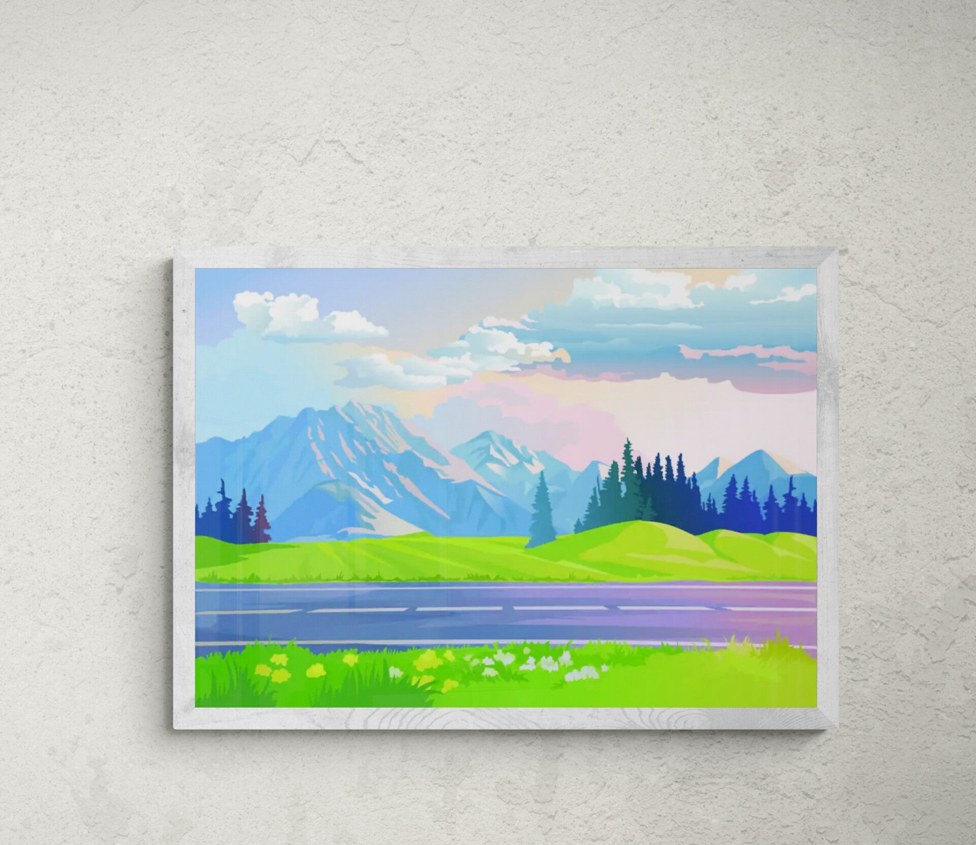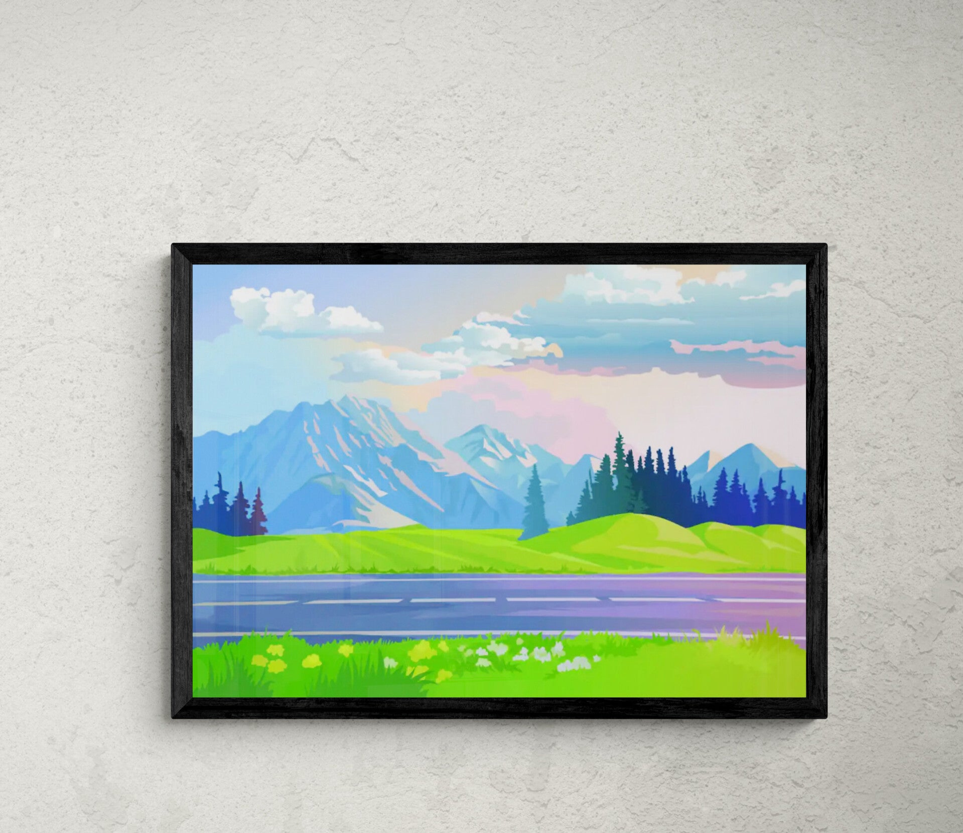 Des rangées de lavande violette s’étendent à l’infini sous un ciel aux couleurs dorées et mauves. Cette affiche inspire sérénité et douceur, comme une invitation à ralentir et respirer. Parfaite pour une décoration qui apaise l’esprit.